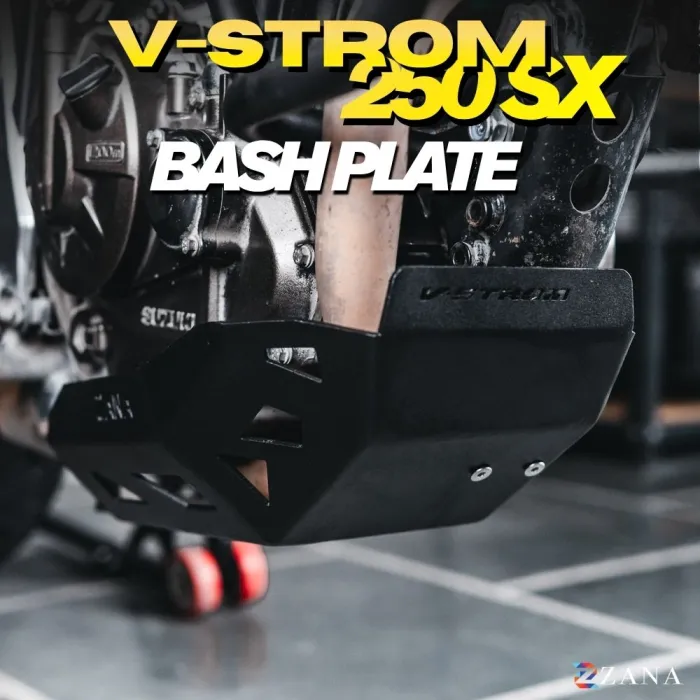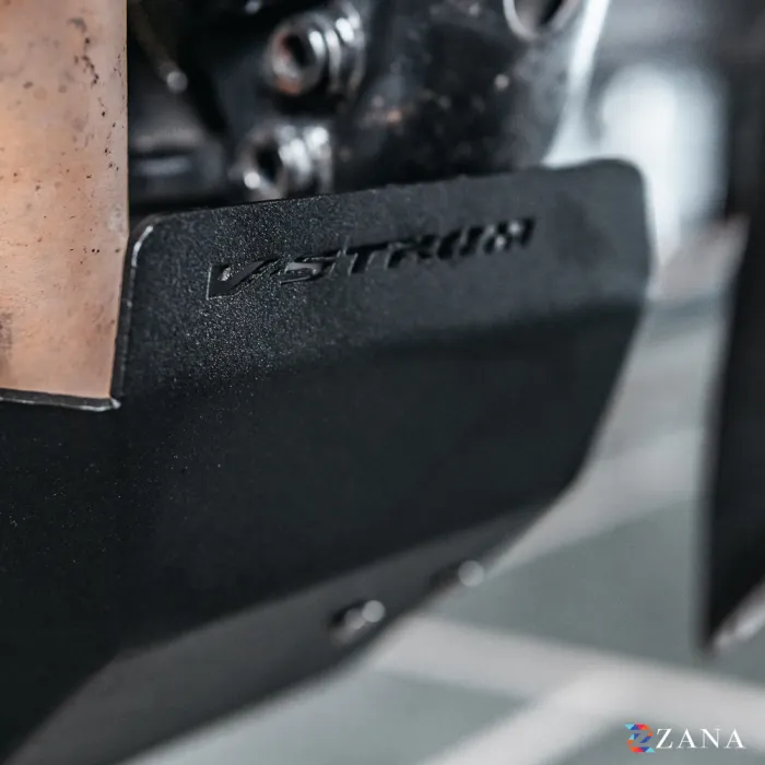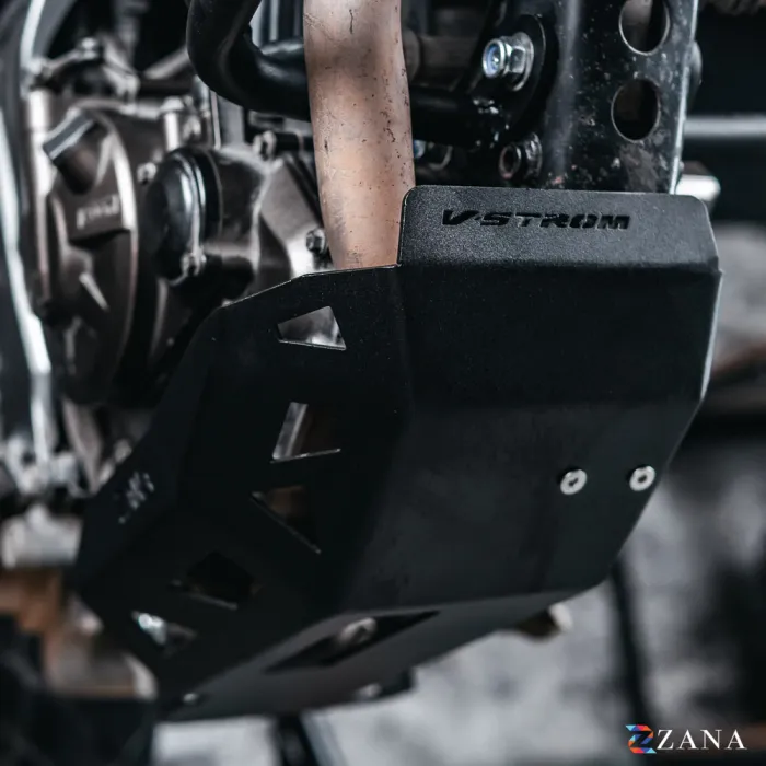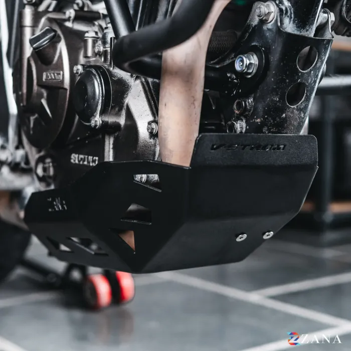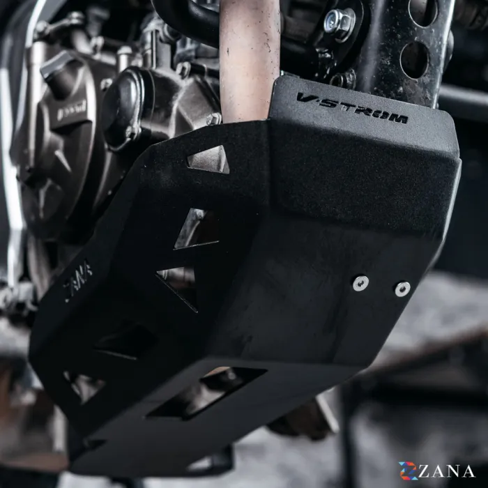 Bash Plate Black MS for V-Strom 250 by Zana Motorcycles provides superior engine protection. Lightweight, durable, and easy to install, it’s perfect for on/off-road use with no ground clearance loss