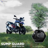 Sump Guard for BMW G310 GS (Heavy Duty Aluminium, Black) offers full engine protection. Compatible with OEM crash bars, easy to mount, and available in black or silver, enhancing durability.