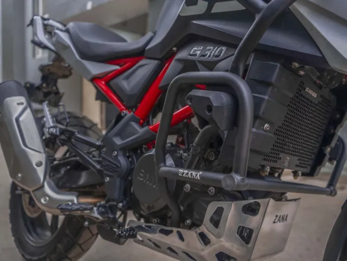 Designed for those who seek robust protection while navigating tough terrains, this engine guard with puck enhances both the functionality and aesthetics of your BMW G310 R. Enjoy peace of mind knowing your bike is fully protected with Zana's premium quality engineering.