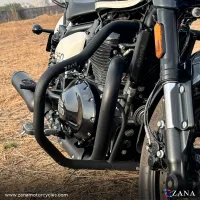 Crash Guard for Shotgun 650 (Black, Mild Steel) Type-1 by ZANA features a strong 3-point construction, thick steel tubes, and stainless steel hardware. Easy installation, engine protection, and 6-month warranty.