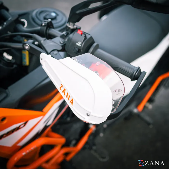 Take your KTM 390 Adventure to the next level with ZANA Hand Guards — designed in white with the iconic orange ZANA logo, delivering premium protection, rugged durability, and aerodynamic performance while perfectly matching the bike’s aggressive ADV styling.