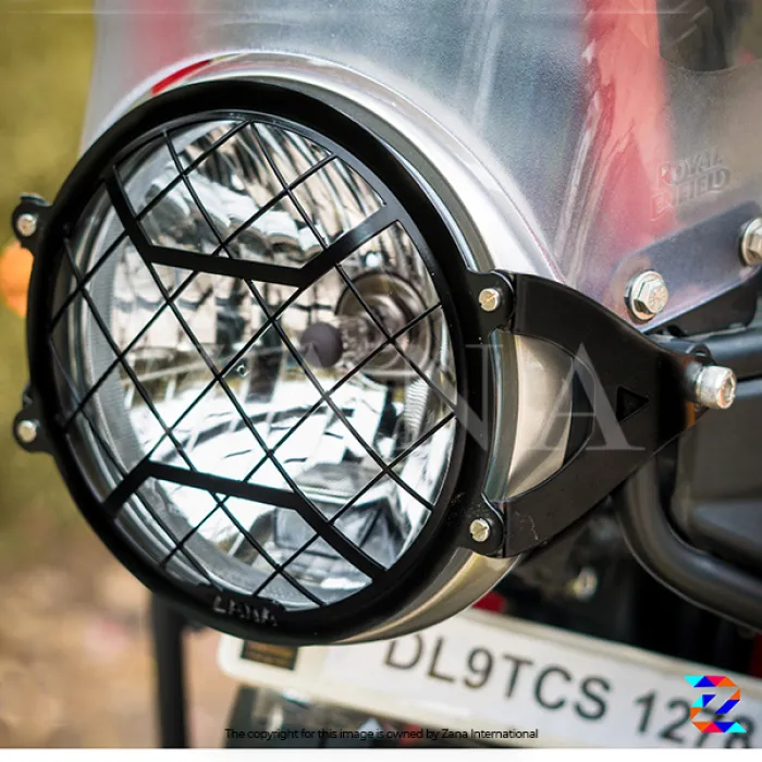 Headlight Grill for Himalayan 411 BS6 (2021) is a premium accessory designed to enhance the safety and aesthetic appeal of your Royal Enfield Himalayan. This product features a patented Zana design, crafted for precise fitment and robust protection against debris, stones, and other hazards that may damage your bike's headlight.