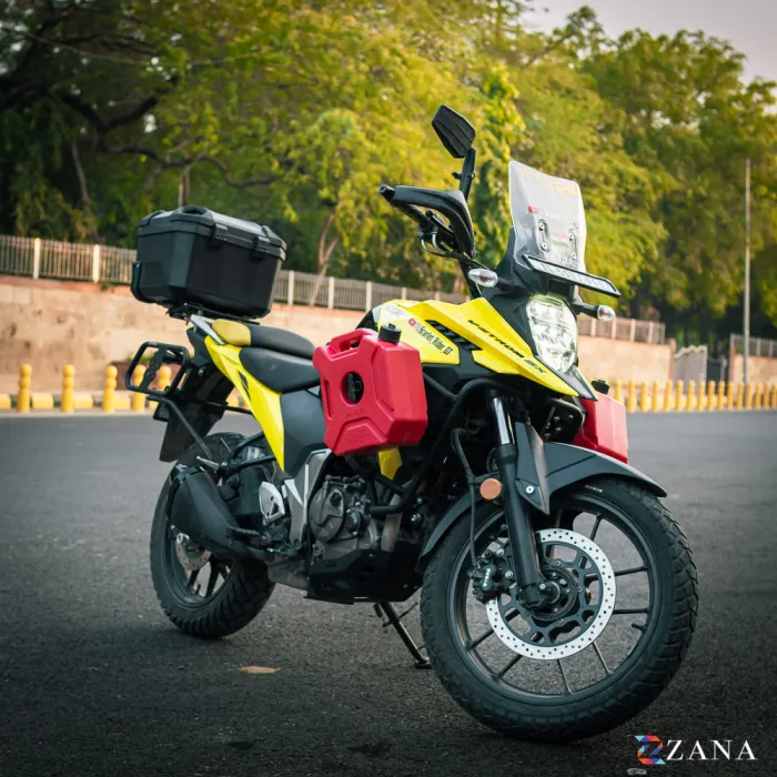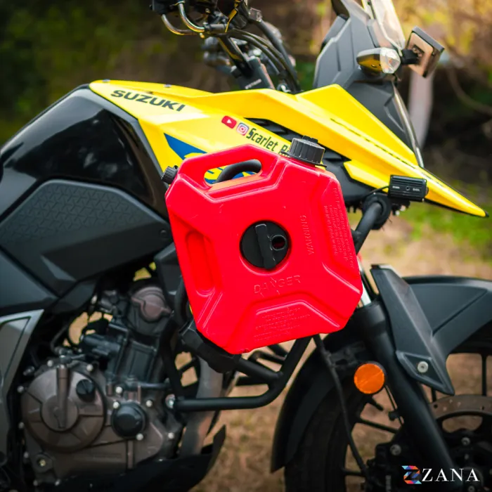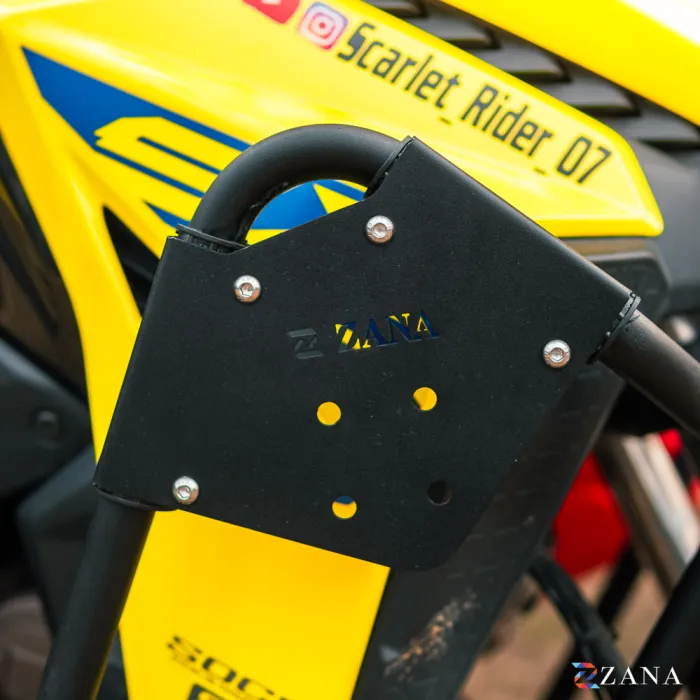 Jerry Can Mount for Suzuki V-Strom 250 adds fuel capacity for long journeys. Made from Mild steel, it’s sleek, durable, and compatible with CE-certified petrol cans. Compatible with Zana Crash Guard only .