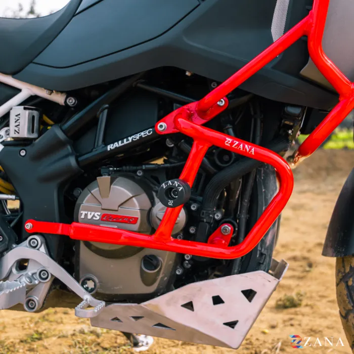 Protect the engine and gearbox of your TVS Apache RTX 300 with Zana’s precision-engineered Lower Crash Guard with Slider (Red). Designed specifically for the Apache RTX platform, this heavy-duty guard delivers reliable protection during falls, impacts, and demanding riding conditions while maintaining rider comfort and bike ergonomics.
