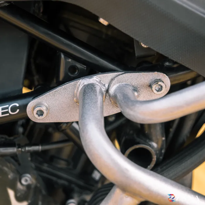 Protect your TVS Apache RTX 300 with Zana’s precision-engineered Lower Crash Guard with Slider, designed to safeguard the engine and gearbox on both the right and left sides. Built for strength, stability, and rider comfort, this crash guard is perfectly suited for city riding, long-distance touring, and off-road adventures.