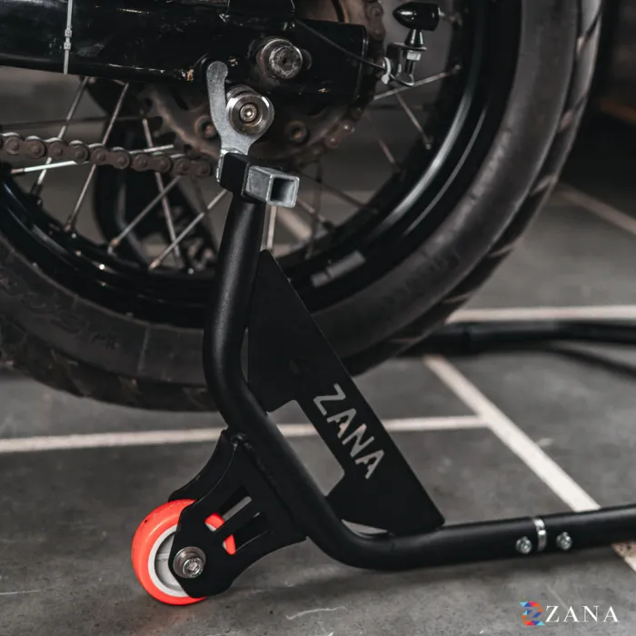 Wide Compatibility: This paddock stand is compatible with motorcycles that use spools or swingarm mounting systems. It supports a wide range of models, including the RE Continental GT, Kawasaki Z900, Versys 650, Suzuki 750, Ducati Scrambler, BMW F900, Honda Fireblade, Ducati Panigale, KTM Duke, KTM Adventure, Dominar XPulse, BMW 310, and more.