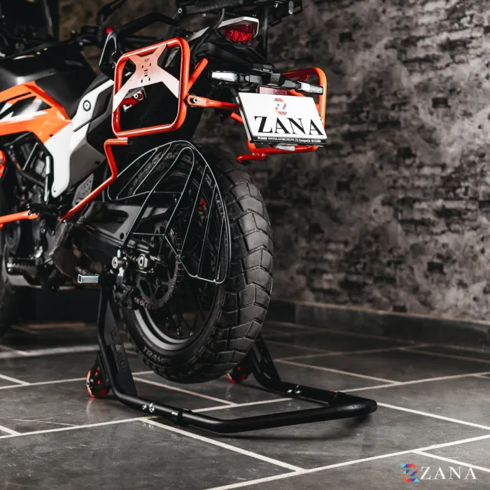 Paddock Stand for Yamaha FZ25 is designed for easy storage and effortless use, perfect for modern homes and apartments. This collapsible stand is built to support motorcycles with spools and swingarm mounts, such as the Yamaha FZ25, RE Continental GT, Kawasaki Z900, Versys 650, Suzuki 750, Ducati Scrambler, BMW F900, Honda Fireblade, Ducati Panigale, KTM Duke, KTM Adventure, Dominar, XPulse, BMW 310, and more.