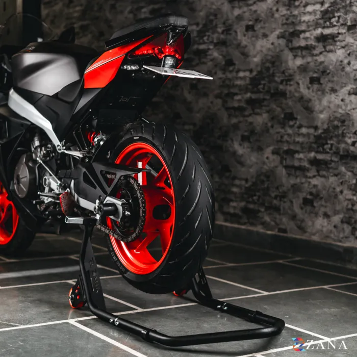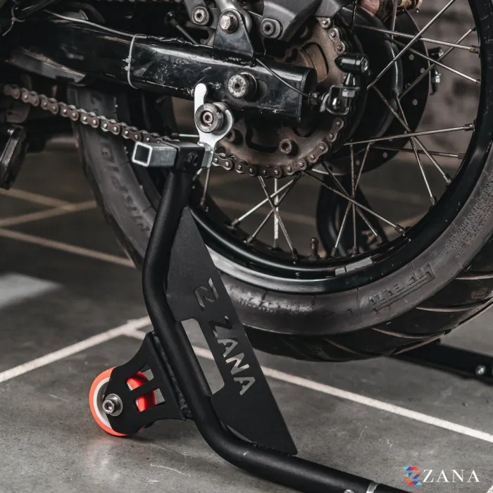 Compatible with motorcycles that use spools and swingarm mounting systems, this stand works with various models like the RE Continental GT, Kawasaki Z900, Versys 650, Suzuki 750, Ducati Scrambler, BMW F900, Honda Fireblade, Ducati Panigale, and more. It also fits bikes with swingarm mounts, such as the KTM Duke, KTM Adventure, Dominar, and BMW 310.