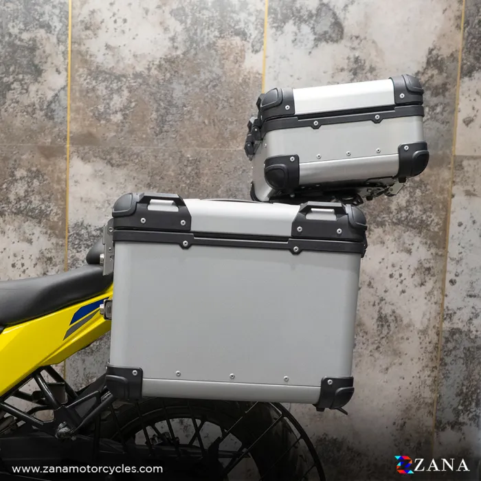 The panniers feature a waterproof gasket system with overflow drainage, ensuring your belongings stay dry even in heavy rain. Equipped with a theft protection key mechanism, the boxes offer enhanced security, making them difficult to duplicate. They are fully compatible with Zana top cases, allowing seamless integration for a complete luggage system. Each set includes a box-specific rack (frame), ensuring precise fitment and maximum stability during rides.