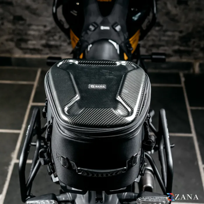 The ZANA Plutocarbon Tail Bag redefines versatility and durability for motorcycle riders who demand style and strength in equal measure. With its sleek hardshell carbon-finish design, expandable capacity, and all-weather protection, this bag is built to perform whether you’re touring, commuting, or heading out for a weekend ride.