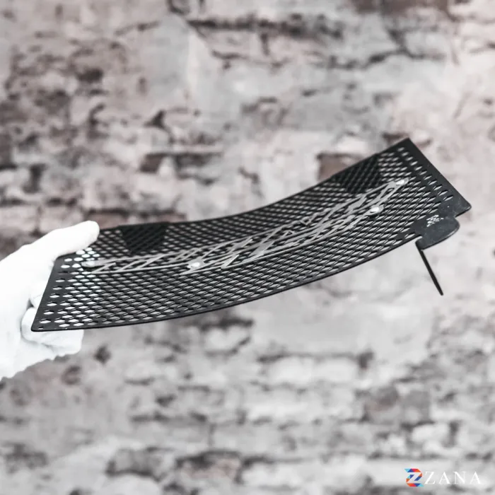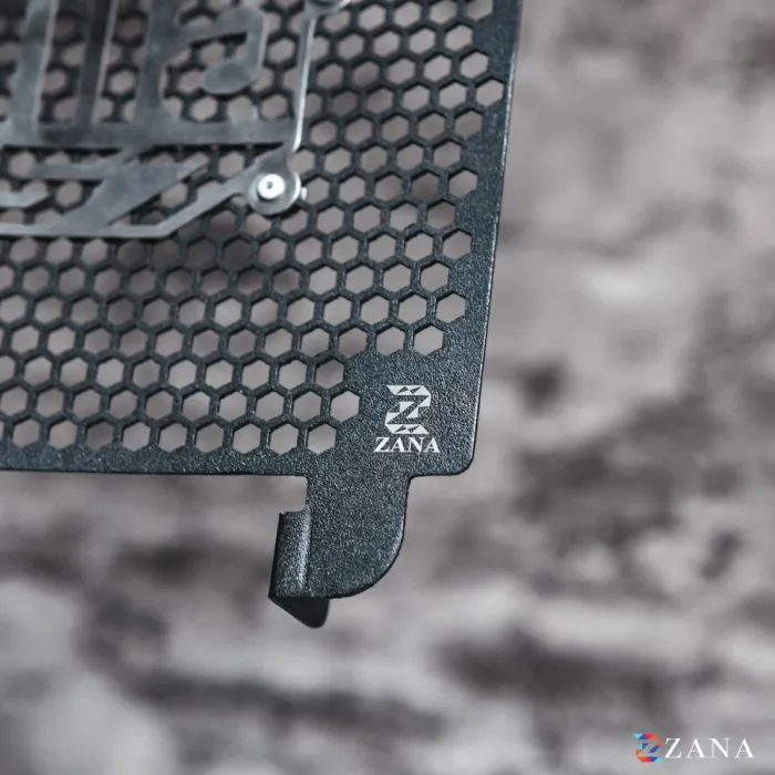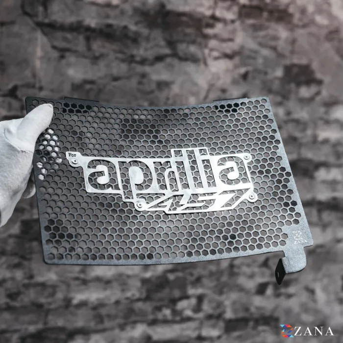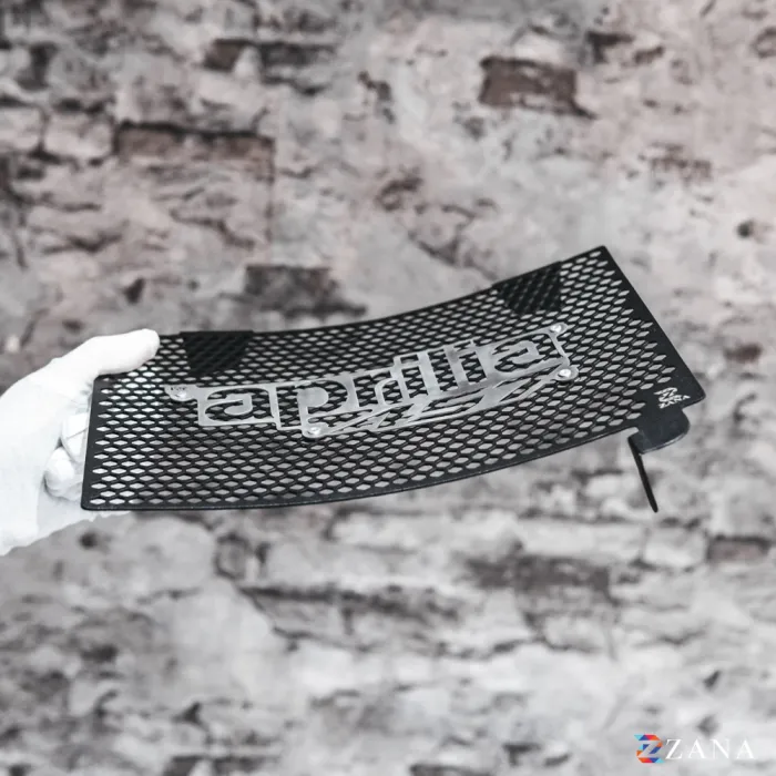 Radiator Guard for Aprilia Tuono 457 is crafted from durable aluminum with a hexagonal mesh design to ensure optimal airflow and heat dissipation while protecting the radiator from debris and road hazards. Finished in black with a premium logo, it adds both protection and style to your bike.