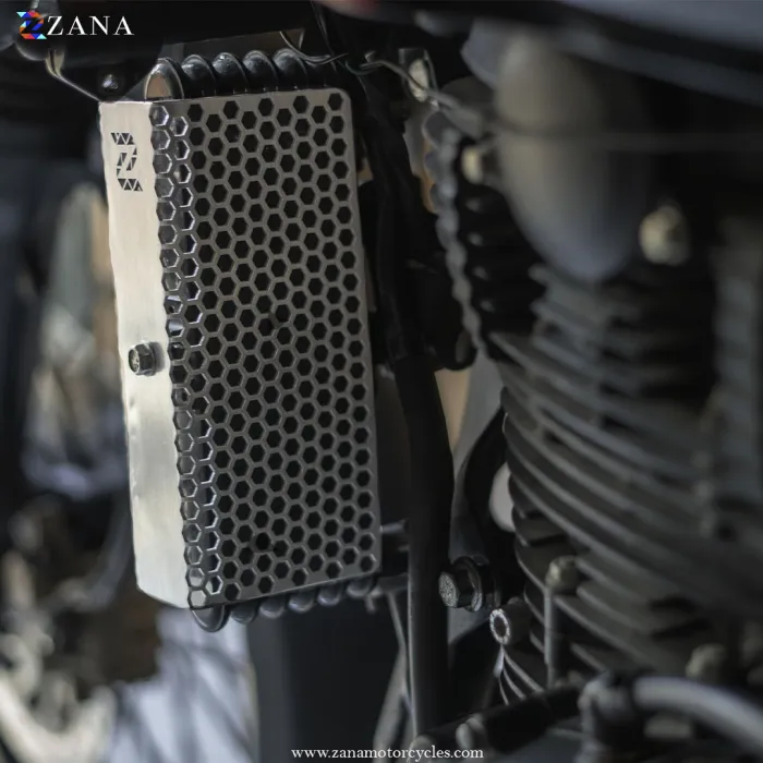 Upgrade your bike with the Radiator Guard for Himalayan BS-3/4/6 in sleek honeycomb silver. Crafted from 100% high-quality aluminum, this guard offers superior heat dissipation and cooling performance. The universally accepted honeycomb design ensures optimal airflow while providing reliable protection for your oil cooler. Perfect for off-road enthusiasts and long-distance touring, it shields your bike from mud, slush, and debris, preventing potential damage to the radiator.