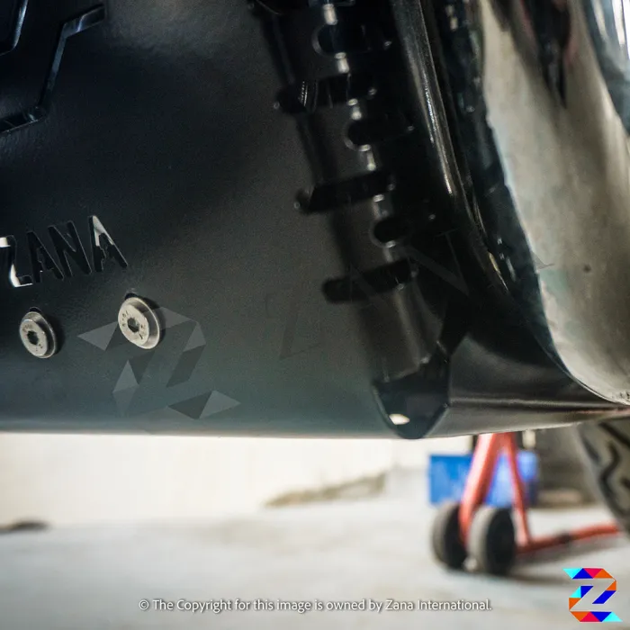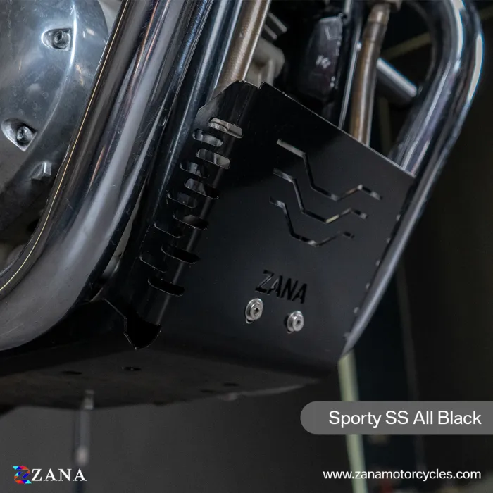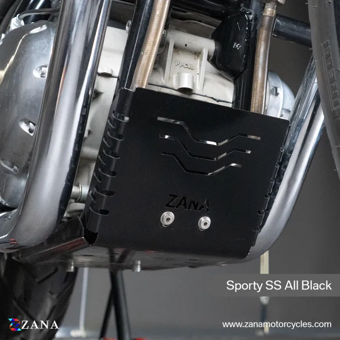 Protect your GT/Interceptor 650 with Zana's All Black Bash Plate. Rust-free, durable, and sleek, it shields the chassis and underbody without ground clearance loss. Super-strong mounts ensure stability.