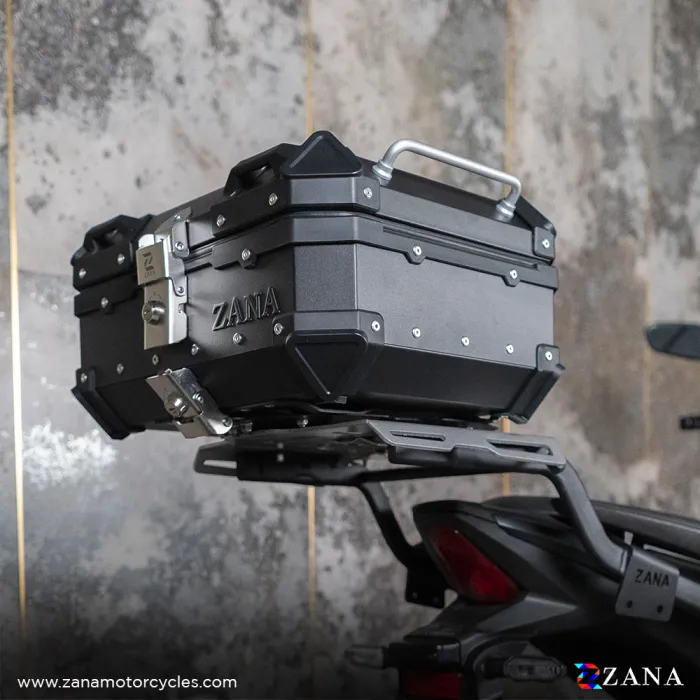 Zana's 22L Aluminium Top Box offers a rust-proof, durable design with waterproof liner, stainless steel lock, and heavy-duty corners. Compatible with Zana top racks, lifetime warranty on rusting.