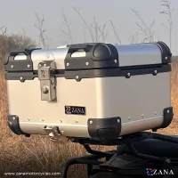 35L Aluminium Top Box (R-Flat Silver) is designed for a variety of adventure motorcycles, offering secure storage and durability for long rides. It is compatible with Royal Enfield Bullet, Classic, Meteor 350, Hunter 350, Himalayan 411, Scram 411, KTM Duke 250/390 GEN-3, Honda CB350, CB300R, and Bajaj Dominar 250/400 when used with Zana Top Rack.