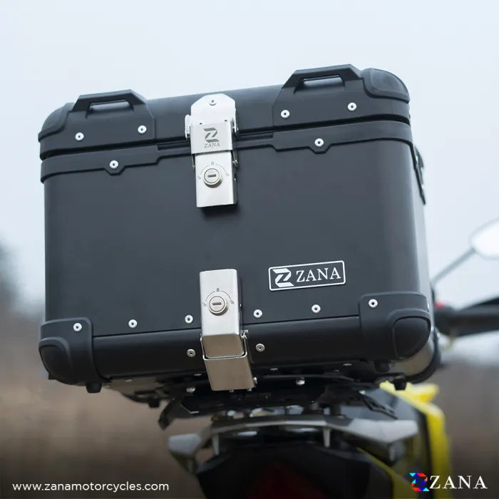 This top box is crafted for ZANA Top Racks and mounts securely onto any motorcycle with a Zana-specific aluminum rack, specially designed for optimal compatibility with aluminium top boxes. For additional protection, the box features plastic heavy-duty armour corners, safeguarding the box from bumps and impacts during travel.