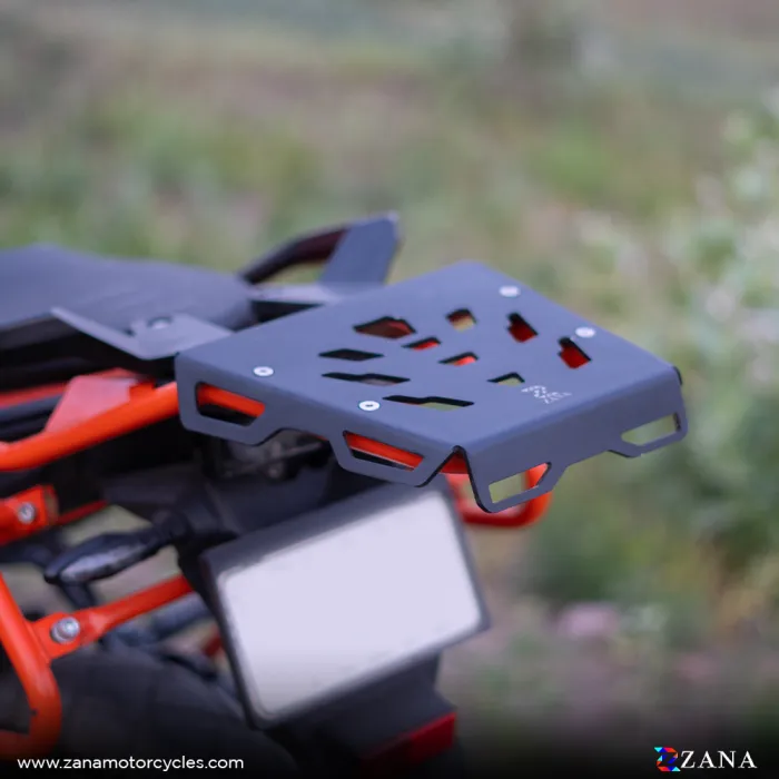 Top Rack for KTM Adventure 250/390/390X (Orange & Black) offers enhanced utility with robust 4-point mounting for secure installation. It’s designed to work with GIVI, HEPCOBECKER, and SHAD top boxes using their mounting plates. This rack is not compatible with aluminum boxes and Chinese boxes. The rack includes an aluminum plate and is compatible with grab rails for added support.