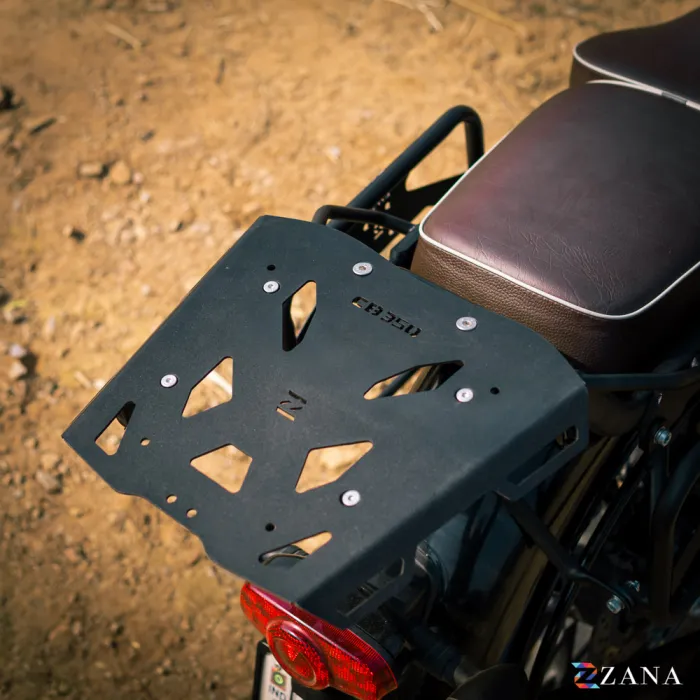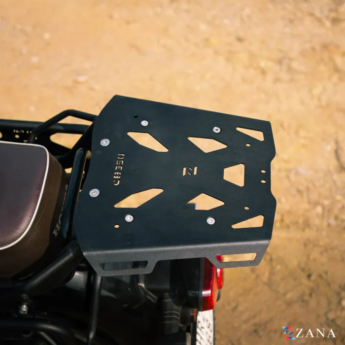 Durable Top Rack with MS Plate for Honda CB 350 2025, Offering Secure Luggage Mounting, 12KG Load Capacity, Compatible with Zana Aluminum and plastics Top boxes.