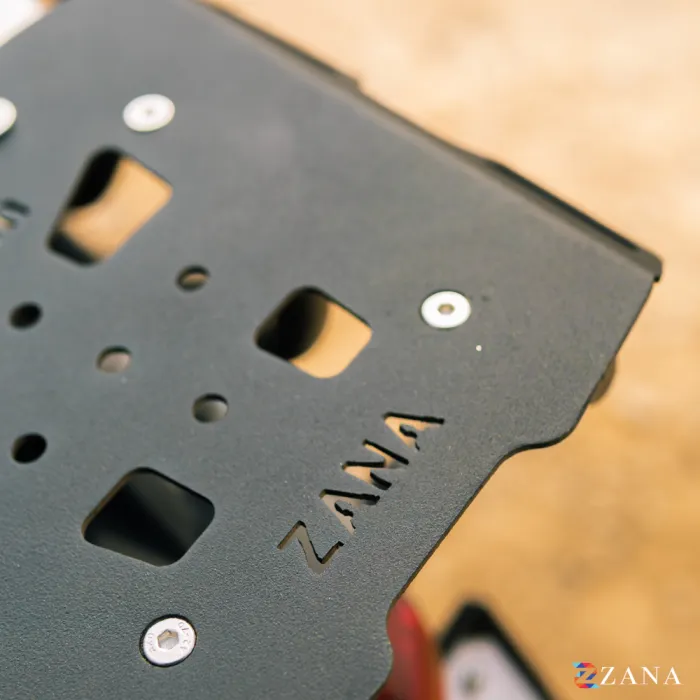 Additionally, the front end of the rack plate includes a provision for installing a pillion backrest. Compatible backrest models ZI-8204 and ZI-7076 can be chosen to provide maximum comfort for the pillion rider, especially when the top box is not installed.