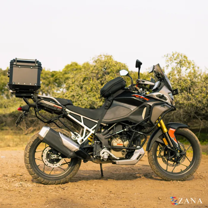 The Top Rack With Plate Type-W for Apache RTX is a heavy-duty and extremely strong luggage solution, specifically designed to support large and heavy aluminium top boxes up to 55 litres. For the best balance, stability, and riding performance, we ideally recommend a 45-litre aluminium box.