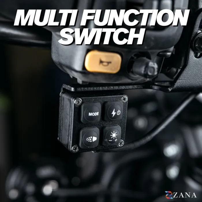 The fog light features an amber DRL that can be switched off completely and comes with a backlit remote with 3-step dimming, allowing you to adjust brightness easily while riding. Built to withstand harsh environments, it has a fully waterproof IP68 rating.