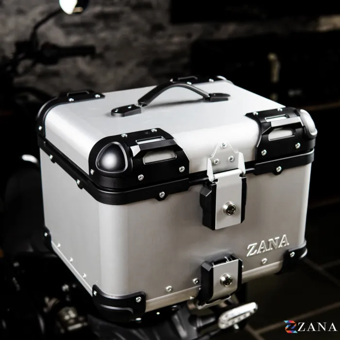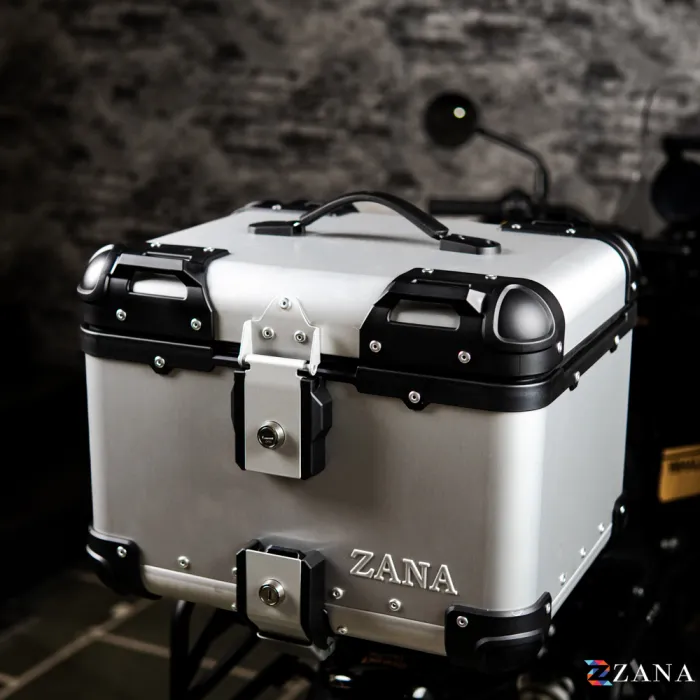 TOP BOX for Apache RTX 300 in Aluminium Silver is the ultimate storage solution for your motorcycle. Designed to provide unmatched durability and a sleek, premium look, this 45-litre box is constructed entirely from high-quality aluminium, making it both lightweight and highly resistant to corrosion. Its rust-proof design ensures long-lasting performance even in challenging weather conditions. Featuring stainless steel locks with copy-proof keys, your belongings stay secure, while the waterproof liner ensures protection from the elements. This top box is specifically designed to mount onto any motorcycle using the ZANA TOP RACK, crafted especially for Aluminium boxes. The heavy-duty mounting plate and robust four-point attachment system make installation easy and reliable.