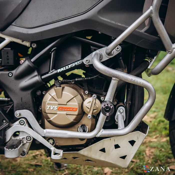 The Upper & Lower Crash Guard Combo with Slider Silver for TVS Apache RTX 300 beak Version is a robust, purpose-built protection system engineered to safeguard critical motorcycle components during falls, impacts, and demanding off-road riding.