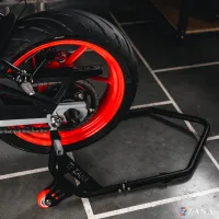 Featuring universal compatibility, the Paddock Stand V-2 Black is equipped with both spool and flat-mount options, catering to different bike configurations. Its foldable design makes storage convenient, saving space when not in use. Whether you're a professional mechanic or an everyday rider, this stand is a must-have for hassle-free motorcycle maintenance.