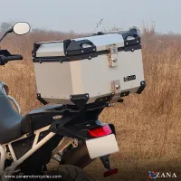 This aluminium top box is compatible with ZANA top racks, which are specifically crafted to fit aluminium boxes. It includes heavy-duty armour corners to protect the box against impacts, and a mounting plate that supports universal top racks for easy installation.