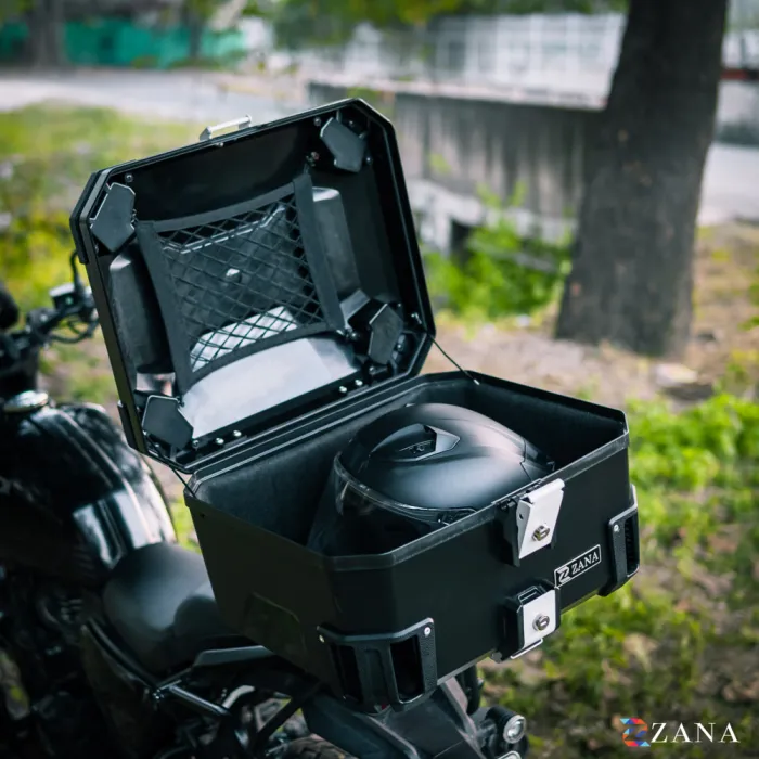 With its 50-litre capacity, this top box provides ample space to store Helmets, luggage, or essential gear, making it a perfect companion for touring, commuting, or adventure rides. The flat black finish complements any motorcycle while maintaining a sleek, premium look.