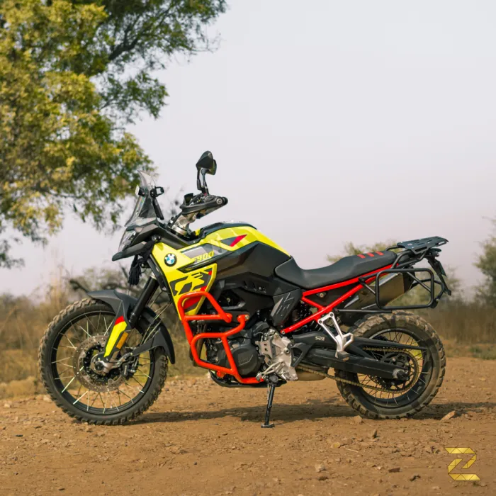 The precision-engineered, rider-friendly design maintains ground clearance, ergonomics, and comfort, allowing free knee movement and confident standing. Finished in a durable red powder coat, it adds corrosion resistance while enhancing the bold adventure styling of the F 900 GS.