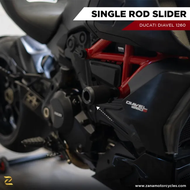 Single Rod Slider for Ducati Diavel 1260 is a premium protection accessory engineered to safeguard your bike's engine and frame during unforeseen impacts. Perfectly tailored for the Diavel 1260, this single rod slider minimizes damage from accidental falls, absorbing and dispersing impact forces effectively to protect your Ducati’s critical components. Crafted from high-grade materials, the Single Rod Slider for Ducati Diavel 1260 ensures exceptional durability and resilience, providing long-lasting protection that doesn’t compromise on style. Its sleek design seamlessly blends with the Diavel’s aggressive aesthetics, enhancing both form and function. Installation is straightforward, allowing you to mount it securely in minimal time, and it’s designed to provide a snug, secure fit. Zana Motorcycles is committed to offering top-notch products with the highest standards in quality. The Single Rod Slider for Diavel 1260 is backed by our leading warranty support, ensuring riders can rely on their purchase for years to come. Our commitment to unparalleled customer service ensures that all our clients receive expert assistance whenever needed. Equip your bike with the Diavel 1260 Single Rod Slider for maximum protection and confidence, knowing Zana’s quality and support back you every mile of the journey.