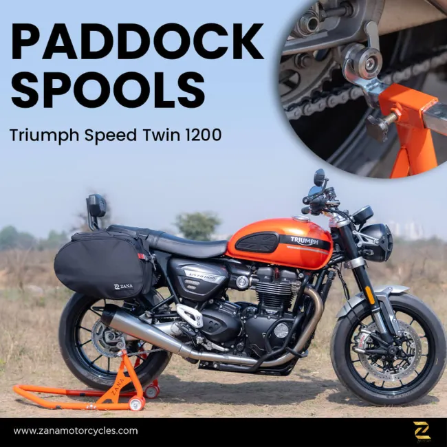 Paddock Spool for Triumph Speed Twin 1200 – Stable Support & Best Service Assistance. Zana Motorcycles offers a premium Paddock Spool for Triumph Speed Twin 1200, designed to provide secure and stable support for maintenance and storage. Crafted from high-quality CNC-machined aluminum, these spools ensure durability and strength while preventing wear on the swingarm during paddock stand use. The Triumph Speed Twin 1200 Paddock Spool allows effortless motorcycle lifting, making chain lubrication, tire changes, and servicing hassle-free. The corrosion-resistant anodized finish enhances longevity while maintaining a sleek, factory-fit appearance. Its robust construction ensures maximum stability, reducing the risk of accidental slips or damage when using a paddock stand. Designed for easy installation, the Paddock Spool for Triumph Speed Twin 1200 features a precise bolt-on fitment, offering a secure hold without modifications. Ideal for both garage maintenance and track use, it enhances convenience and safety for every rider. Zana Motorcycles is committed to providing the best service support, ensuring high-quality motorcycle accessories built for performance and reliability. Choose Zana for your Speed Twin 1200 Paddock Spool, where superior craftsmanship, durability, and enhanced maintenance efficiency come together to elevate your riding experience.