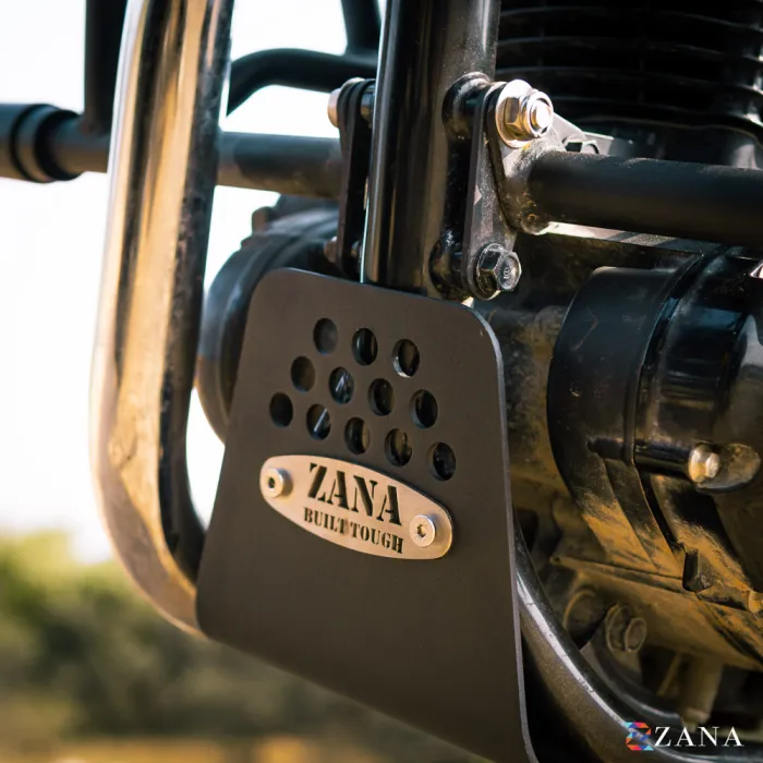 Zana’s Black Bash Plate for the Honda CB350 2025 offers robust protection for the chassis and underbody without compromising ground clearance. Crafted from premium aluminum, it is 100% rust-free and built to withstand harsh conditions. Strong mounts ensure secure attachment and durability, while the sleek black finish enhances your bike’s look. Ideal for city rides and off-road adventures, it keeps crucial components safe from debris and impacts.