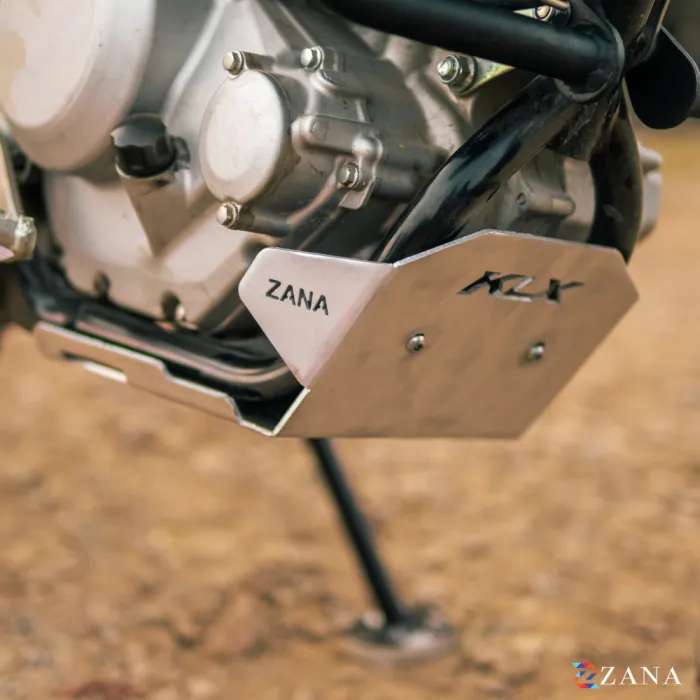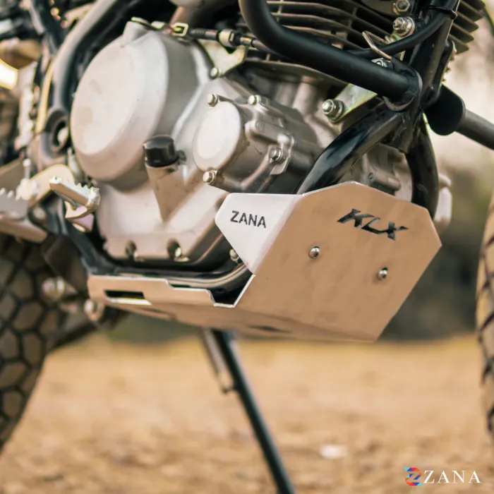 Bash Plate Silver Aluminum for Kawasaki KLX 200 : Lightweight, strong aluminum construction, mounted on durable Zana brackets. Floating design prevents engine damage. Includes hardware and manual.