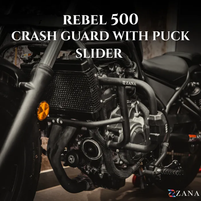 Protect your Honda Rebel 500 with the Crash Guard with Slider Puck (MS Black) – a heavy-duty, performance-focused accessory designed to safeguard vital components during both urban rides and long-distance touring.