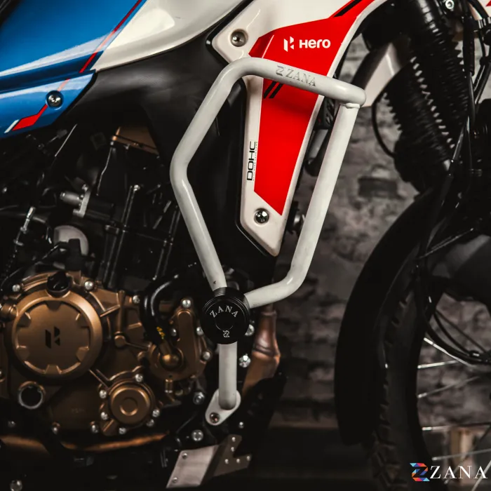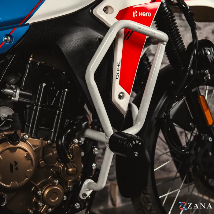 The Crash Guard with Slider Glossy White for X-Pulse 210 is a robust protection system engineered to safeguard the critical components of your motorcycle—such as the petrol tank, radiator, and engine casing. Designed specifically for the X-Pulse 210