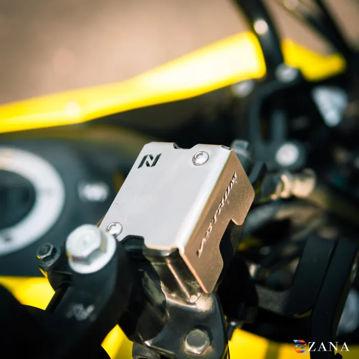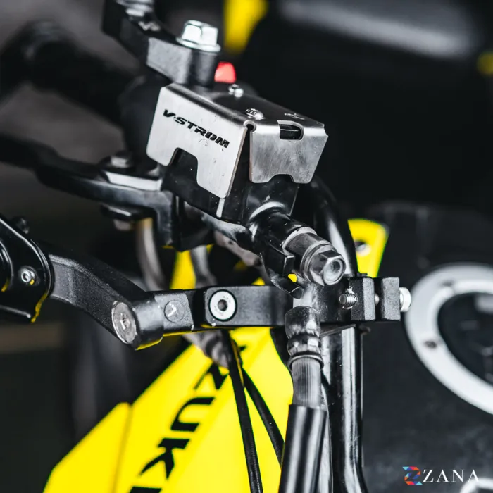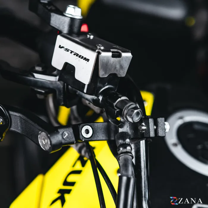 Front Fluid Reservoir Oil Cover for Suzuki V-Strom 250, made from high-grade stainless steel with a lifetime rust warranty. Protects your brake reservoir from debris and external elements