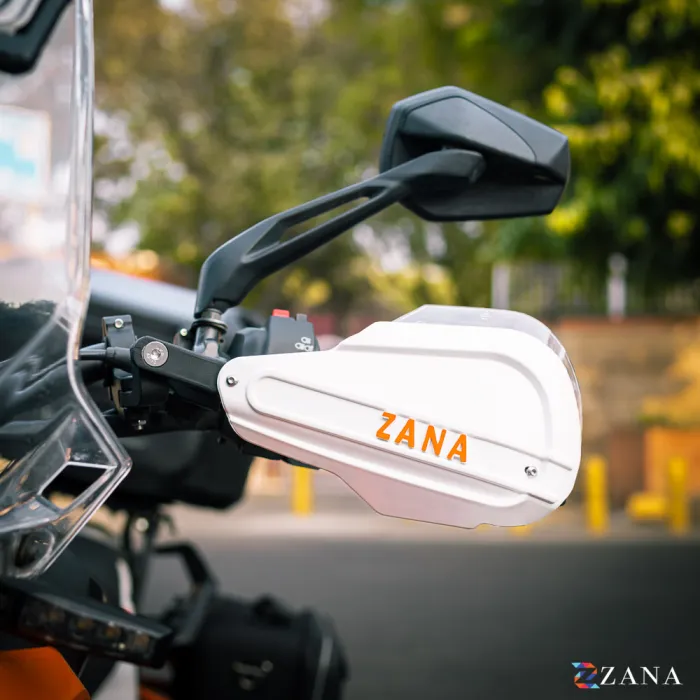 Take your KTM 390 Adventure to the next level with ZANA Hand Guards — designed in white with the iconic orange ZANA logo, delivering premium protection, rugged durability, and aerodynamic performance while perfectly matching the bike’s aggressive ADV styling.