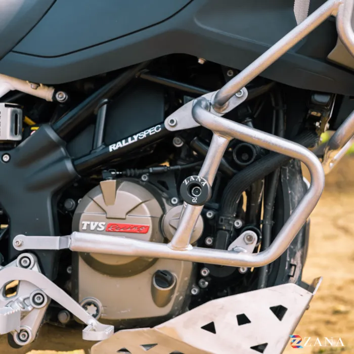 Protect your TVS Apache RTX 300 with Zana’s precision-engineered Lower Crash Guard with Slider, designed to safeguard the engine and gearbox on both the right and left sides. Built for strength, stability, and rider comfort, this crash guard is perfectly suited for city riding, long-distance touring, and off-road adventures.