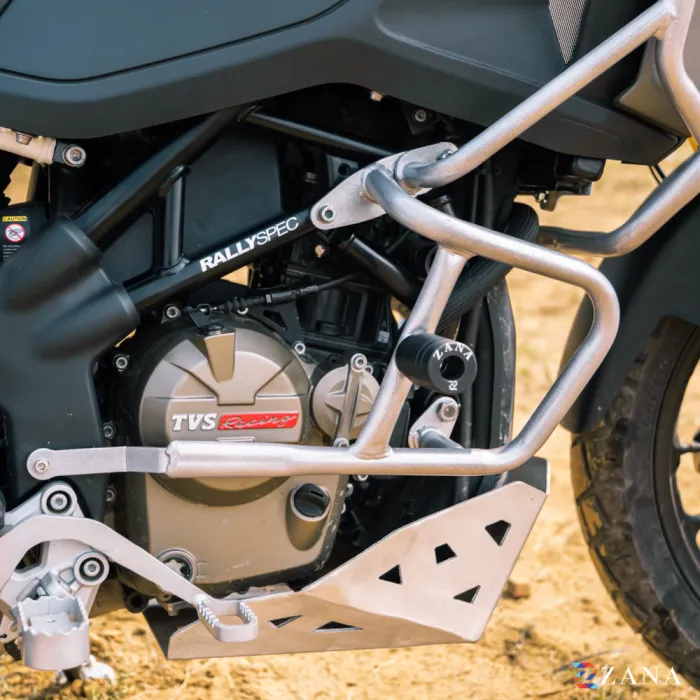 Upgrade your TVS Apache RTX 300 with Zana’s Lower Crash Guard with Slider and ride with confidence, knowing your engine is protected in every riding condition.