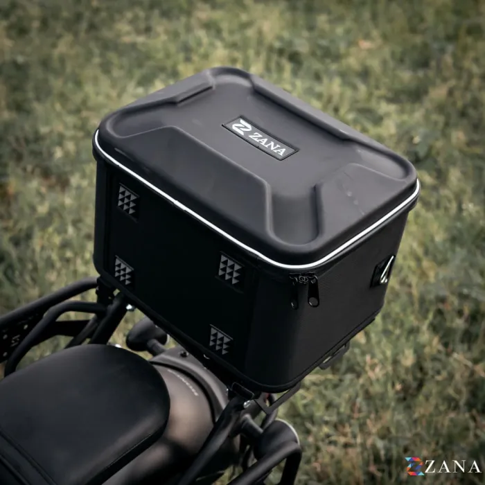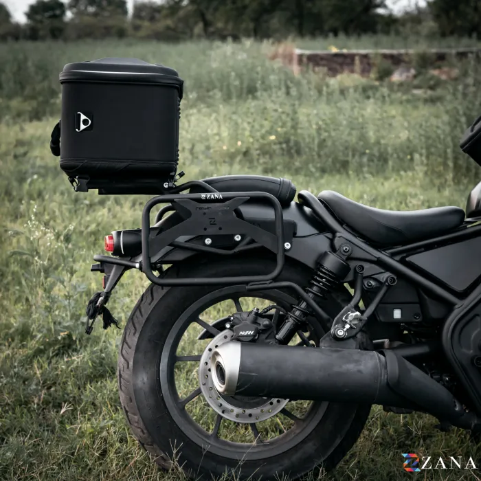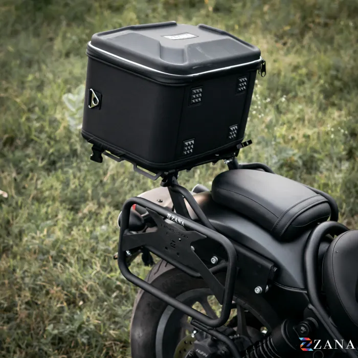 Zana’s 36L Maximus Tail Bag offers a no-seat-overlap fit for rider comfort, with a durable hard shell, water-resistant fabric, reflective detailing, and a suitcase-style handle—perfect for touring with your Rebel 500.