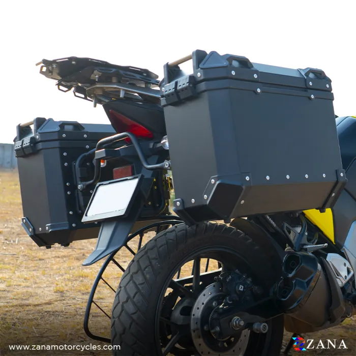 These panniers are exclusively compatible with ZANA top cases and pannier frames, ensuring easy installation and a perfect fit for your Himalayan 450. The included box-specific frame guarantees maximum stability and easy integration into your luggage system.