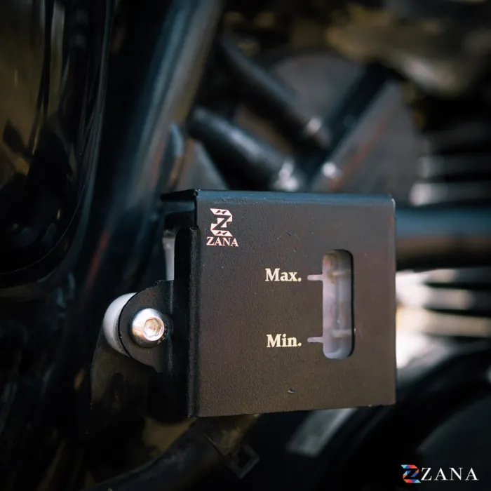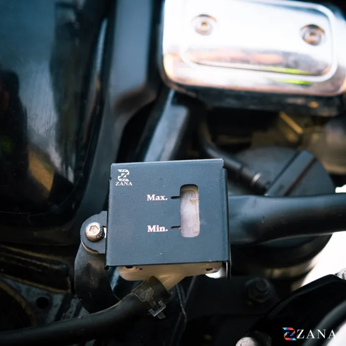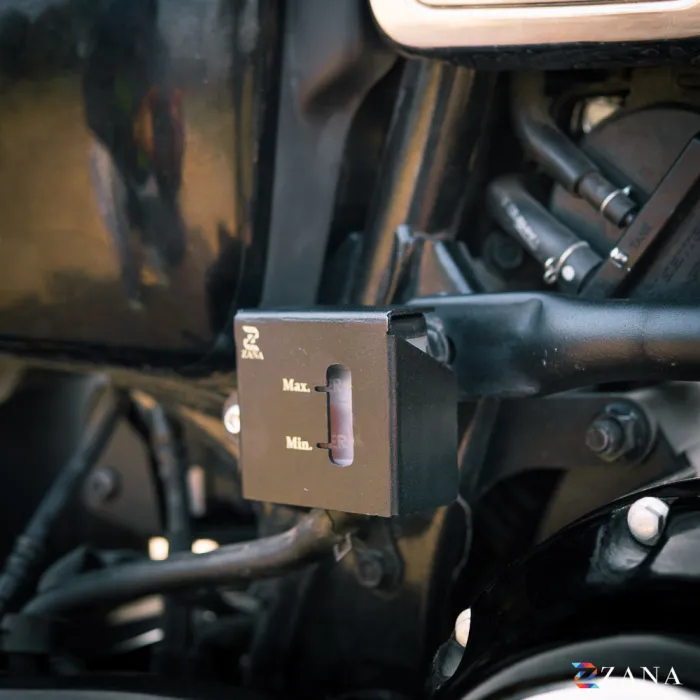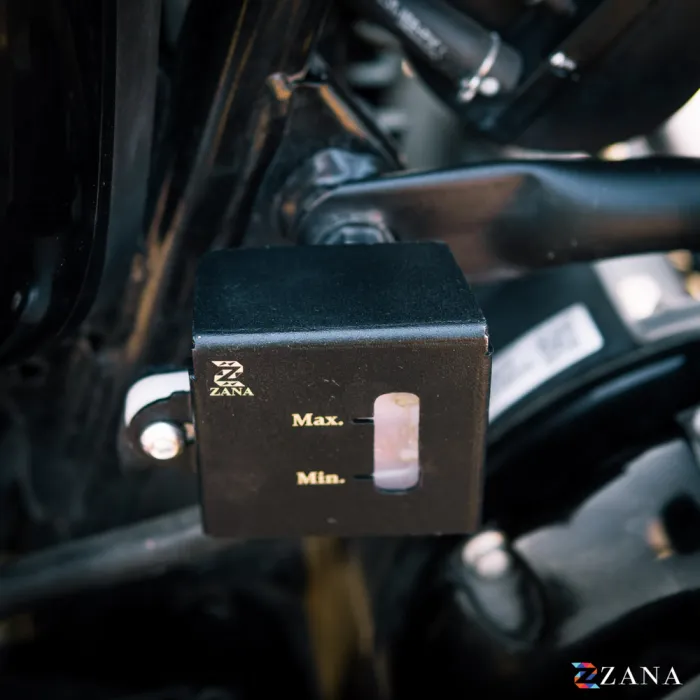 Protect your Honda CB350 2025’s rear fluid reservoir with Zana’s premium Rear Fluid Reservoir Cover in black. Made from high-grade aluminum, it delivers durable, heavy-duty protection against impacts and off-road conditions. The sleek black finish enhances your bike’s look while maintaining a sophisticated style. Designed for easy installation, it comes with a lifetime anti-rust guarantee, ensuring long-lasting performance and reliable corrosion resistance.