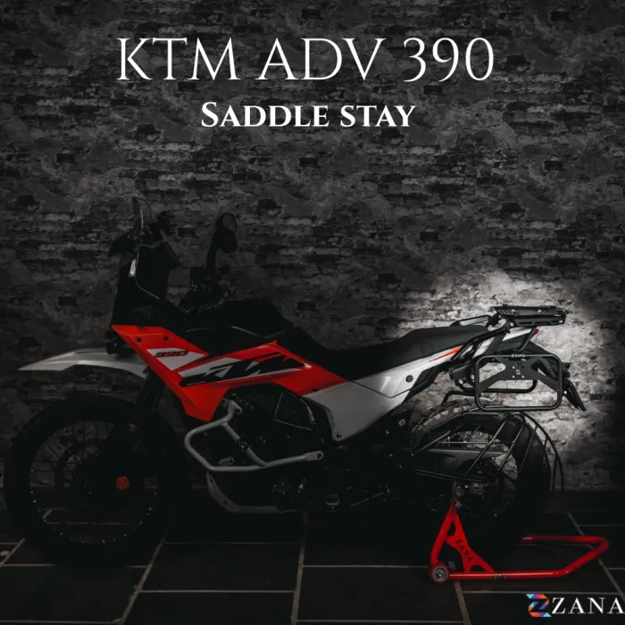 Premium Saddle Stay with Jerry Can Mount for KTM ADV 390 2025, designed for extra fuel storage and luggage support. Built for adventure, durability, and stability.
