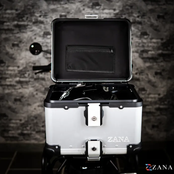 TOP BOX for Himalayan 450 in Aluminium Silver is the ultimate storage solution for your motorcycle. Designed to provide unmatched durability and a sleek, premium look, this 45-litre box is constructed entirely from high-quality aluminium, making it both lightweight and highly resistant to corrosion. Its rust-proof design ensures long-lasting performance even in challenging weather conditions. Featuring stainless steel locks with copy-proof keys, your belongings stay secure, while the waterproof liner ensures protection from the elements. This top box is specifically designed to mount onto any motorcycle using the ZANA TOP RACK, crafted especially for Aluminium boxes. The heavy-duty mounting plate and robust four-point attachment system make installation easy and reliable.