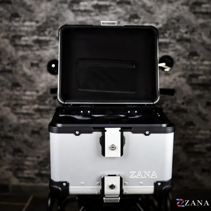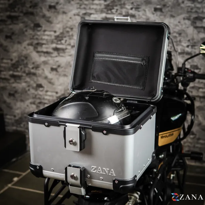 TOP BOX for Apache RTX 300 in Aluminium Silver is the ultimate storage solution for your motorcycle. Designed to provide unmatched durability and a sleek, premium look, this 45-litre box is constructed entirely from high-quality aluminium, making it both lightweight and highly resistant to corrosion. Its rust-proof design ensures long-lasting performance even in challenging weather conditions. Featuring stainless steel locks with copy-proof keys, your belongings stay secure, while the waterproof liner ensures protection from the elements. This top box is specifically designed to mount onto any motorcycle using the ZANA TOP RACK, crafted especially for Aluminium boxes. The heavy-duty mounting plate and robust four-point attachment system make installation easy and reliable.