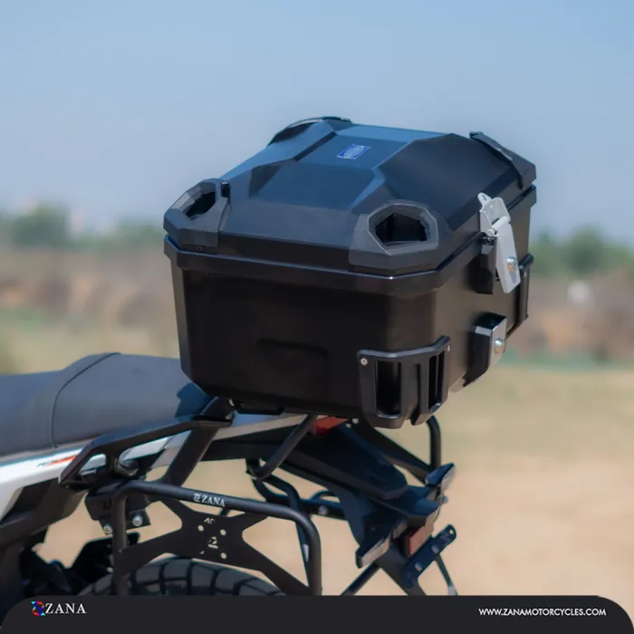 Zana 50L Plastic Top Box offers secure, weatherproof storage for riders. Durable, lightweight, and compatible with Zana top racks, ideal for touring.
