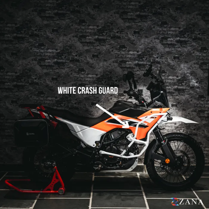 Looking for the perfect KTM crash guard setup for your long-distance rides? Zana brings you the ultimate KTM Touring Crash Bars, specially designed to offer complete protection to both your engine and upper fairing during road trips and highway adventures – now also available in a stylish White finish.
