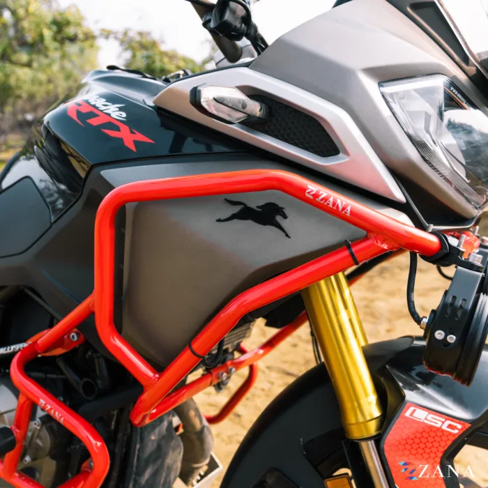 Protect the tank area and upper fairing of your TVS Apache RTX 300 with Zana’s precision-engineered Upper Fairing Guard (Red). Designed specifically for the Apache RTX platform, this heavy-duty guard provides dependable protection during falls, impacts, and adventure riding, without compromising rider comfort or control.